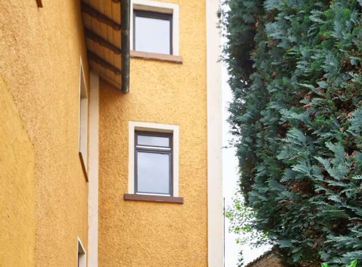 Der pflegeleichte Garten hinter dem Haus sowie eine Terrasse laden zu entspannten Stunden im Freien ein. Aus den oberen Etagen des Hauses, bietet sich ein herrlicher Ausblick ins Rheintal.