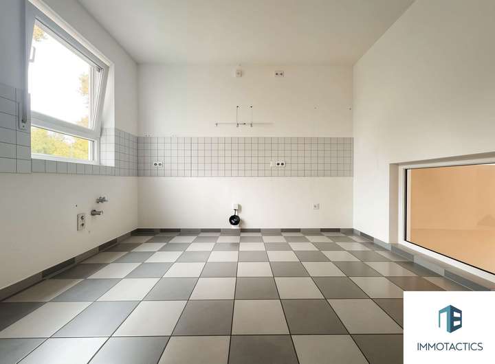 Beim Eintreten erwartet Sie eine helle Diele mit direktem Zugang zum praktisch gelegenen Gäste-WC – ideal für Alltag und Besucher, ohne Einblick in den Wohnbereich. Direkt angrenzend an die Diele liegt die geräumige Küche mit Blick in das Wohnzimmer, die sich individuell nach Ihren Vorstellungen gestalten lässt. Sie bietet ausreichend Platz für eine eigene Küchenlösung – von der funktionalen Küchenzeile bis zur modernen Wohnküche mit Essbereich.
