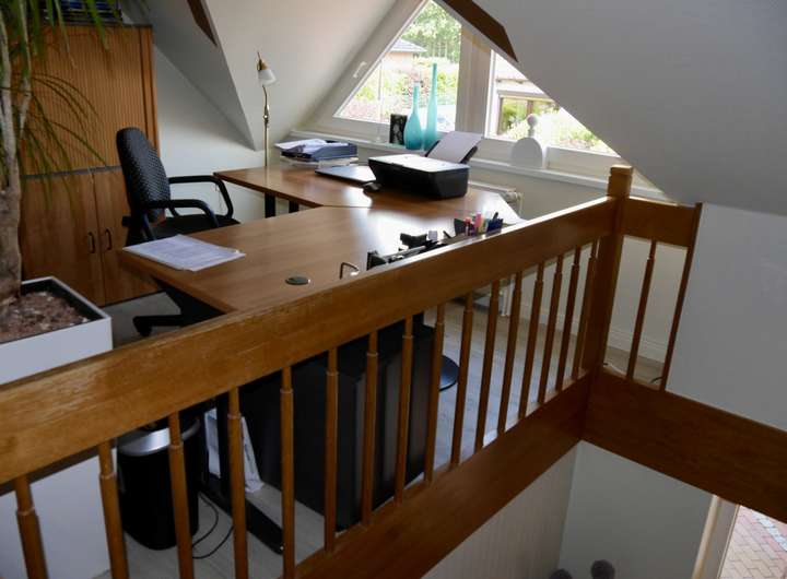 Über eine bequeme Treppe gelangen Sie ins Obergeschoss.