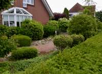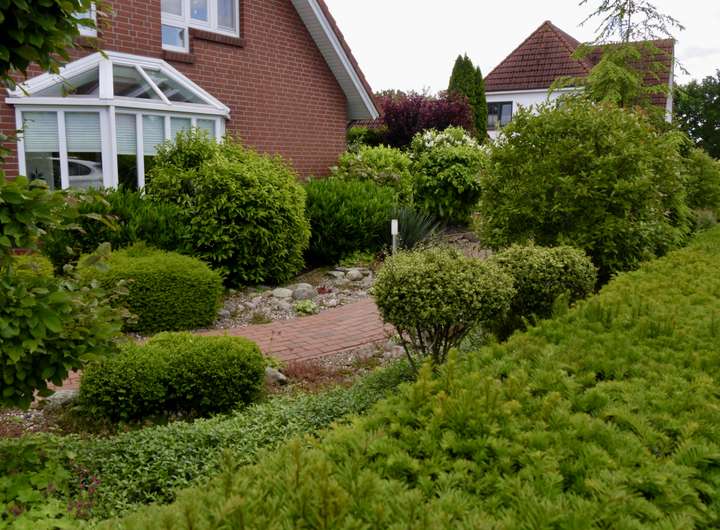 Das 720 m² große, sonnige Grundstück ist liebevoll angelegt, mit professionell gestalteten Wegen und einer harmonischen Bepflanzung. Ein Paradies für Gartenfreunde und ein idyllischer Rückzugsort für die ganze Familie.