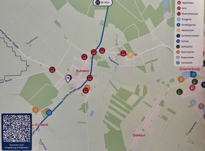 Familien profitieren von einer hervorragenden Bildungsinfrastruktur: Kitas und Grundschulen sind in wenigen Minuten erreichbar, weiterführende Schulen, darunter ein Gymnasium, sogar in nur wenigen Fahrradminuten.