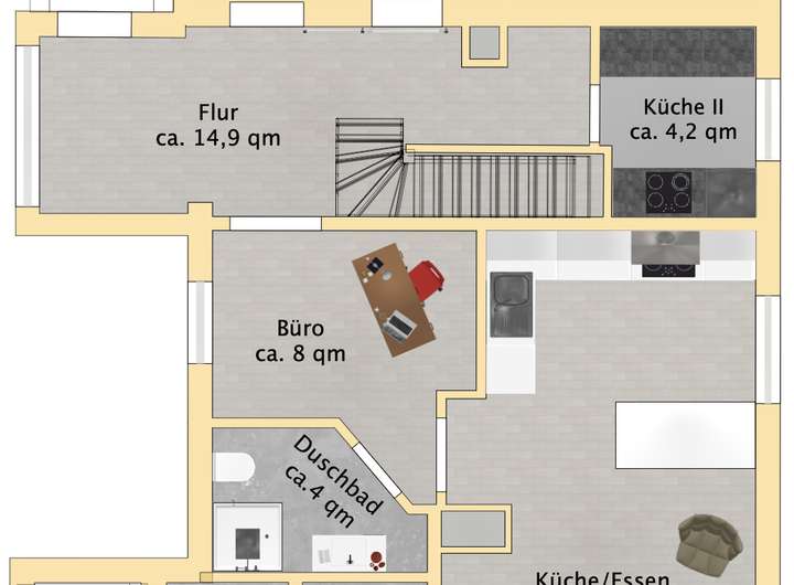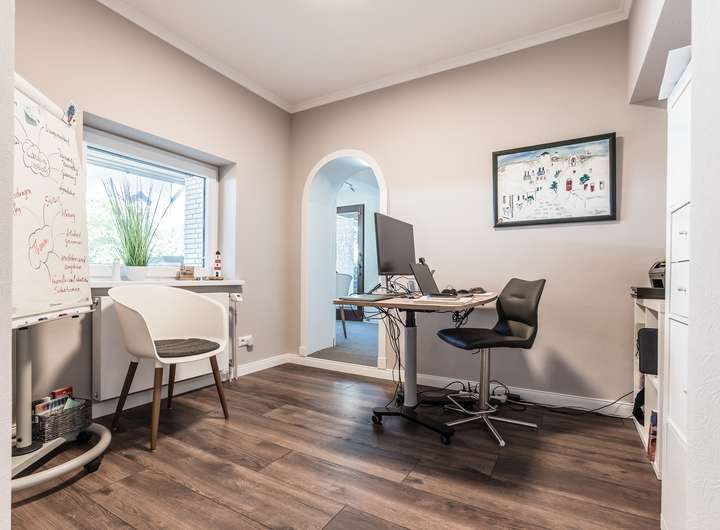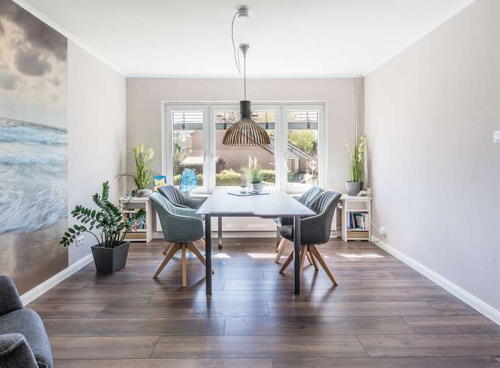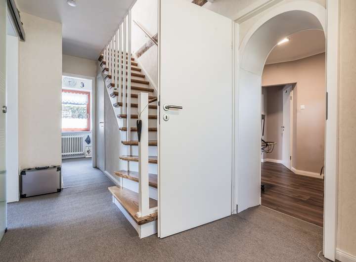 Wundertüte im Eidelstedter Redingskamp wartet auf kreative Köpfe. Darf ich mich mal der Öffentlichkeit präsentieren und mit meinen Möglichkeiten ein bisschen angeben? Momentan bin ich ein Einfamilienhaus mit schicker Einliegerwohnung. Ich könnte aber auch ganz leicht ohne Einliegerwohnung oder ich mache gleich 3 Parteien glücklich. Die dafür benötigten separaten Eingänge, Küchen und Bäder hätte ich schon aufgrund der verschiedenen Baujahre. 1938 wurde ich als Einfamilienhaus gebaut, aber da Platz haben besser ist als Platz brauchen, kam 1967 ein toller Anbau dazu . Also aktivieren Sie mal Ihre Baumarkt Kundenkarte und locken Sie Ihre handwerklich begabten Freunde mit Grillwurst und Bier! Sollten Sie zwei linke Hände haben, rufen Sie gerne den Bauunternehmer Ihres Vertrauens an. Hereinspaziert! Mein Eingangsbereich lässt schonmal erahnen, welche Möglichkeiten ich bieten könnte. Den Aufgang in die Einliegerwohnung lassen wir aber erst einmal rechts liegen und schauen uns das Erdgeschoss an. Im Eingangsbereich können Ihre Mäntel, Jacken und Schuhe schonmal super hell und mit coolem Bodenbelag abhängen. Im angrenzenden Koch-Essbereich müssen die Ärmel kein bisschen hochgekrempelt werden. Hier schaut Sie Ihr Bauunternehmer jetzt wahrscheinlich fragend an, denn hier gibt es für ihn nichts zu tun. Die schönsten Partys finden ja bekanntlich in der Küche statt. Und in meiner geht das ganz hervorragend, ohne dass Ihr Bauunternehmer auch nur einen Finger krumm machen müsste. Da kommen die Hobbyköche unter Ihnen voll auf ihre Kosten und beim Kochlöffelschwingen entgeht Ihnen auch nichts von dem Tratsch und Klatsch, den die Gäste dringend loswerden müssen. Im angrenzenden Essbereich dürfen sich Family & Friends auf Ihre Kochexperimente freuen. In den hinteren Teil des Hauses geht es durch das Arbeitszimmer mit angrenzendem Bad. Jetzt könnte Ihr Bauunternehmer neugierig werden, sollten Sie über die anfangs erwähnten drei kleinen Wohneinheiten nachdenken. Vielleicht wollen Sie aber auch einfach nur eine große Wohneinheit mit 171 m2 für Ihre Familie. Wie bereits erwähnt, biete ich Ihnen zahlreiche Möglichkeiten.