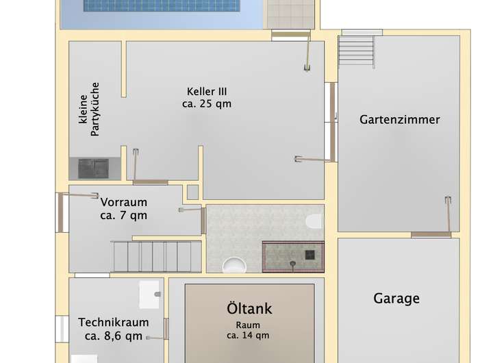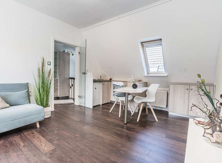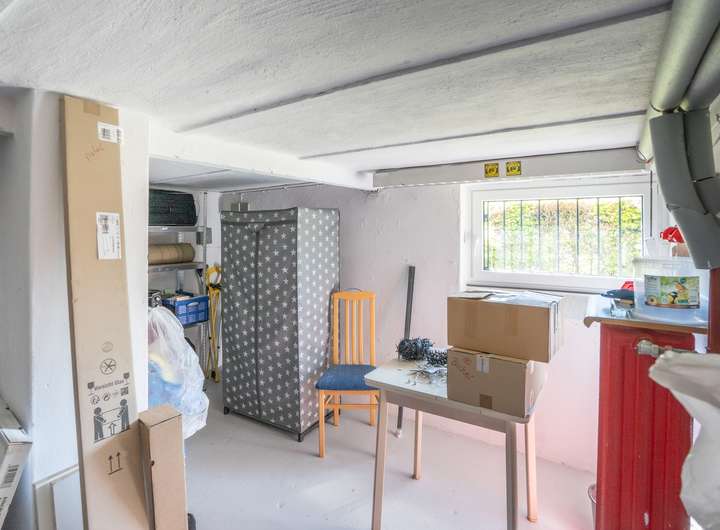 Schauen Sie sich die Grundrisse gerne genauer an. Im hinteren Teil des Hauses biete ich Ihnen einen großzügigen Flur und das Wohnzimmer. Platz satt für Couch, Essecke, und ein kleiner Arbeitsplatz wäre auch noch drin. Dann haben wir noch die kleine Küche. Die ist zwar etwas in die Jahre gekommen, aber sie funktioniert und macht alles mit. Spannend, wenn Sie mit den drei Wohneinheiten liebäugeln. Jetzt wäre es an der Zeit einen Blick auf Ihren Bauunternehmer zu werfen und der sollte einen auf die Grundrisse werfen. Dann zeig ich Ihnen jetzt mal mein Oberstübchen. Die Treppe ist doch wirklich der Wumms. Das Schlafzimmer ist hell und geräumig und teilt sich die ca.18 m2 mit einem begehbaren Kleiderschrank. Da wurde die Schräge mal optimal ausgenutzt. Und dann haben wir hier noch ein Bad. Das große Fenster sorgt für ausreichend Tageslicht und dafür, dass Lidstrich und Lippenstift exakt in der Spur bleiben. Zusammengehalten werde ich von meinem Dachboden und meinem Keller. Jetzt sind Sie baff, was? Hier oben steht das geerbte Geschirr von Tante Frieda auf jeden Fall trocken. Aber vielleicht fällt Ihnen ja noch eine sinnvollere Aufgabe für den Dachboden ein. Hier kann natürlich auch ein Zwergen-Paradies vom Feinsten entstehen. Und für die Auf-nimmer Wiedersehen Kartons gibt es ja auch noch meinen Wahnsinns-Keller. Der ist das el dorado der Möglichkeiten. Ein Blick in die Grundrisse wäre sicher wieder hilfreich. Das ist doch mal eine Partylocation hier unten. Und das mit Küche und Bad. Und jetzt kommt der Hammer. Schmeißen Sie die Diskokugel an! Sollte Ihr Bauunternehmer jetzt die Hände über dem Kopf zusammenschlagen, muss das nicht unbedingt Begeisterung sein.