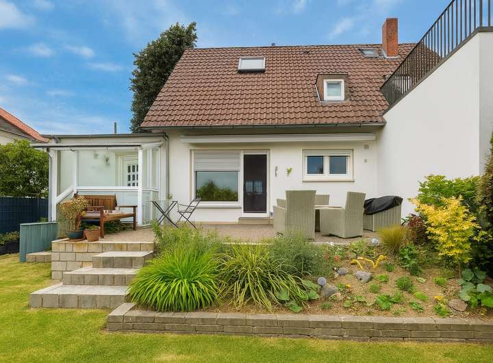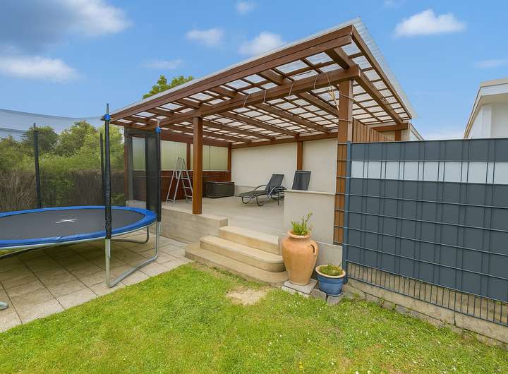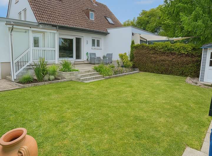 Das Haus wurde in massiver Bauweise errichtet und verfügt über zwei voll ausgestattete Badezimmer sowie einem separaten Gäste WC. Der großzügige Garten bietet viel Platz zur Nutzung im Alltag oder für Familienaktivitäten. Eine großzügige Terrasse erweitert den Wohnraum ins Grüne und schafft eine angenehme Verbindung zwischen Innen und Außen.