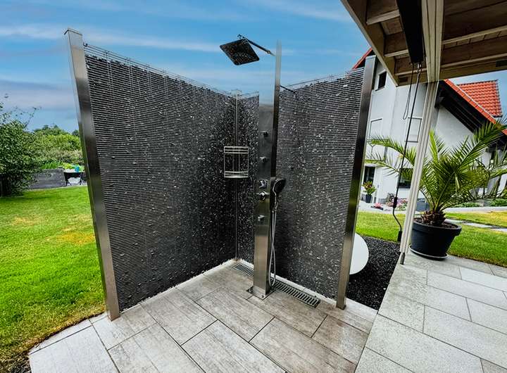 - Gartenhaus, Außendusche mit Warmwasseranschluss
