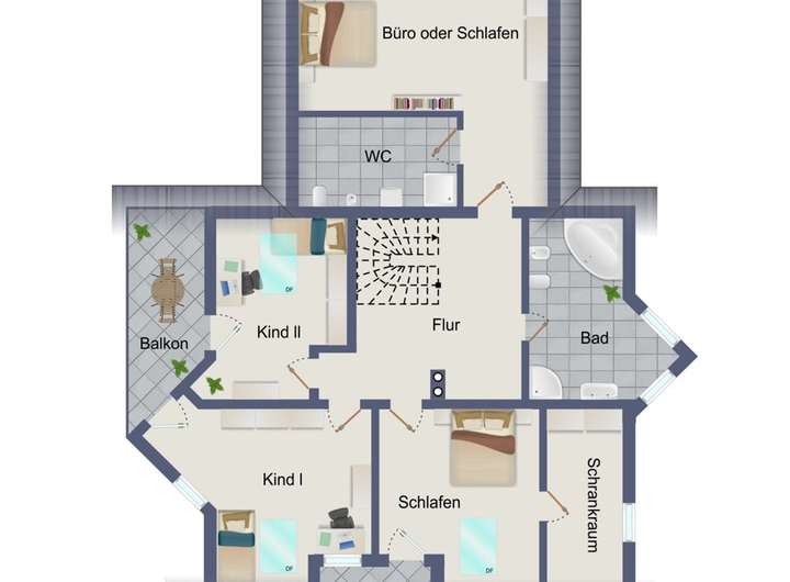 - Zwei Balkone mit unterschiedlichen Ausrichtungen für Sonnenstunden zu jeder Tageszeit