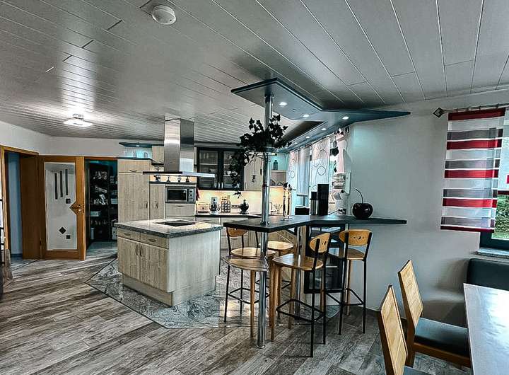 - die große Küche mit Speisekammer und einer großen Sitzgruppe bis zu 9 Personen