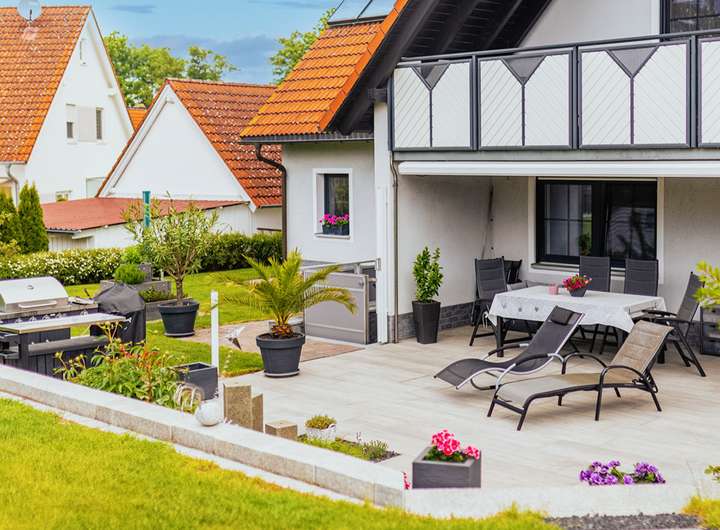 - 2 Großzügige Terrassen mit Blick in den gepflegten Garten