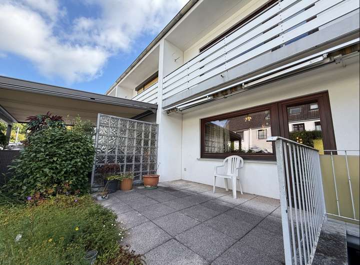 Im Erdgeschoss der Immobilie befindet sich das gut geschnittene und großzügige Wohn- und Esszimmer. Der Wohnbereich verfügt über einen einen direkten Zugang zur Sonnenterrasse und dem kleinen Garten. Hier ist ausreichend Platz für die ganze Familie vorhanden. Die Wohnküche liegt ebenfalls im Erdgeschoss. An ein Gäste- WC und einer Garderobe im Eingangsbereich wurde gedacht.