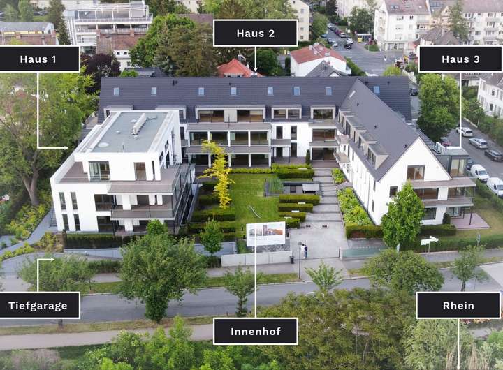 Großzügige Terrassen, elegante Balkone und exklusive Dachterrassen erweitern den Wohnraum ins Freie. Mit direktem Rheinblick werden diese Außenbereiche zu privaten Refugien, die zu jeder Jahreszeit begeistern.