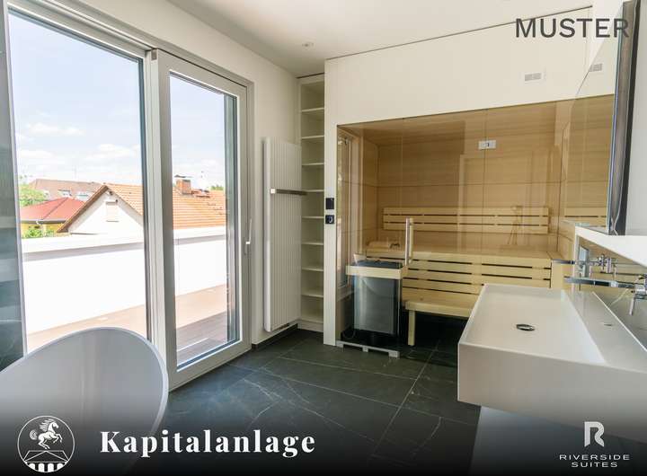 Riverside Suites: Naturverbundenheit und urbanes Leben, moderne Architektur und nachhaltiger Komfort, privater Rückzugsort und lebendige Nachbarschaft.