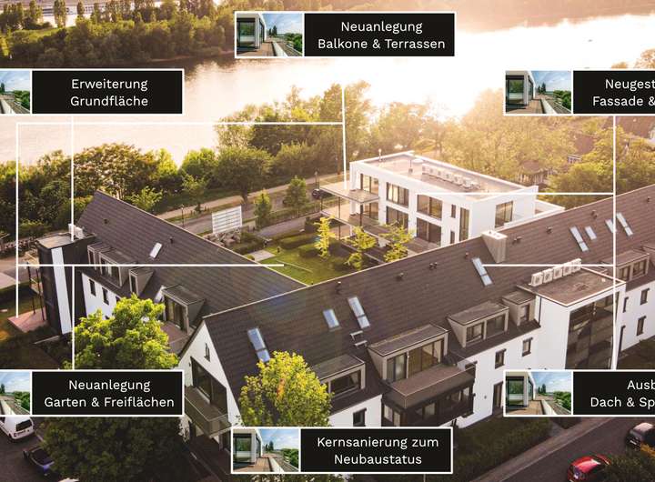 Die Riverside Suites schreiben eine bemerkenswerte Geschichte: Aus dem ehemaligen Bürogebäude der DAL entstanden durch eine ambitionierte Kernsanierung im Jahr 2021 außergewöhnliche Wohnräume mit Neubaustatus. Heute vereint das Ensemble moderne Architektur mit der unvergleichlichen Lage direkt am Rhein. Ein naturverbundener Rückzugsort im Herzen der pulsierenden Rhein-Main-Region.