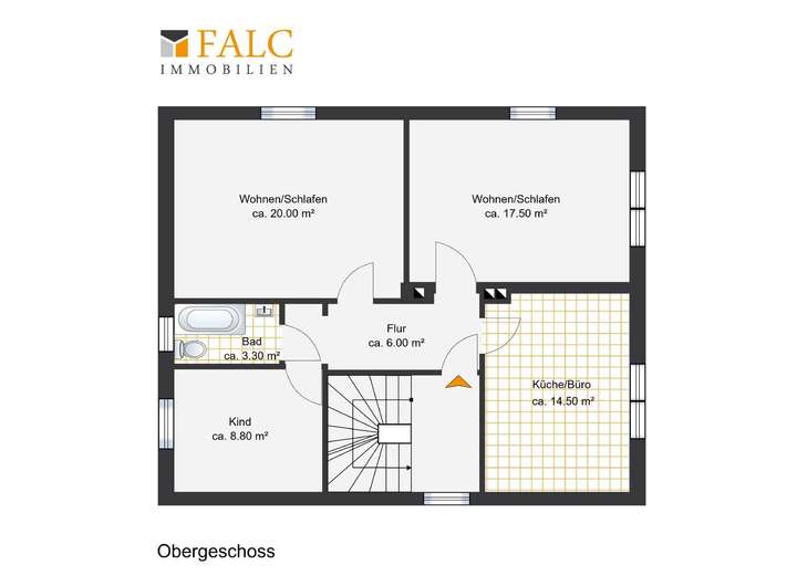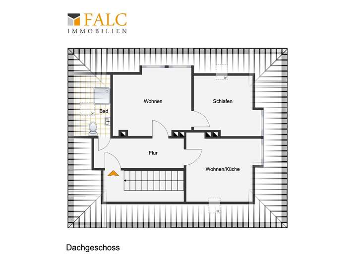Die Immobilie verfügt über eine funktionale Raumaufteilung, die sich über mehrere Etagen erstreckt. Im Dachgeschoss befinden sich weitere Zimmer, die als Schlafzimmer oder Büro genutzt werden können. Ein Duschbad mit WC und eine kleine Küche ließen hier auch eine separate (und vermietbare) Wohneinheit entstehen.