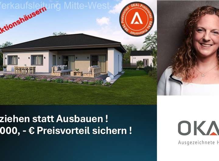 ***Aktion nur gültig bei Abschluss eines Hausvertrages für ein OKAL-Haus der Aktionsserie "Pur" bis zum 31.10.2025. Gutschein gültig für eine OKAL-Markenküche Schüller Halbinsel im Wert von 6.800 EUR inkl. Elektrogeräte.