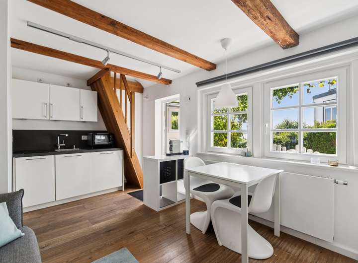 Im Herzen des malerischen Treppenviertels von Blankenese befindet sich dieses außergewöhnliche Haus, das mit seiner Geschichte, seinem Charakter und seiner liebevollen Sanierung aus der Masse heraussticht. Mit einer Wohnfläche von ca. 19 m² und einem Grundstück von rund 49 m² gilt es als das kleinste Haus im Viertel – ein echtes Unikat, das sowohl Liebhaber historischer Gebäude als auch Investoren anspricht. Das ursprüngliche Baujahr 1870 verleiht dem Haus seinen historischen Charme, während die umfassende Kernsanierung von 2015 modernen Wohnkomfort auf kleinstem Raum sicherstellt. Auf zwei Ebenen erwarten Sie ein gemütlicher Wohn- und Essbereich, ein Badezimmer sowie ein Schlafbereich im ausgebauten Dachgeschoss. Von dort eröffnet sich durch das Fenster ein unvergleichlicher Blick auf die Elbe – ein Highlight, das den besonderen Reiz dieses Hauses ausmacht. Der Wohnbereich ist lichtdurchflutet und vermittelt trotz der kompakten Fläche ein Gefühl von Weite. Vor dem Haus lädt ein kleiner Sitzplatz auf dem Grundstück zu entspannenden Momenten im Freien ein. Hier können Sie die vorbeiziehenden Schiffe beobachten, die Elbsonne genießen oder einfach die Ruhe des Viertels auf sich wirken lassen. Ergänzt wird das Haus durch ein charmantes, maßgefertigtes kleines Gartenhaus, das 2021 von einem Tischler gebaut wurde. Es bietet praktischen Stauraum für Koffer, Gartenutensilien oder weitere persönliche Gegenstände. Das Haus wird aktuell erfolgreich als Ferienimmobilie genutzt, eignet sich aber ebenso als privater Rückzugsort, Wochenenddomizil oder stilvolles Kapitalanlageobjekt. Da es nicht unter das Hamburger Wohnraumschutzgesetz fällt, genießen künftige Eigentümer eine flexible Nutzungsmöglichkeit und können das Objekt nach eigenen Vorstellungen einsetzen. Überzeugen Sie sich selbst im Rahmen einer Besichtigung und verlieben Sie sich in diese einzigartige Immobilie.