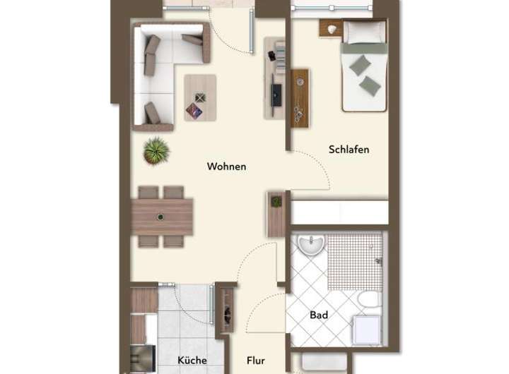 Die hier angebotenen fünf Einheiten verteilen sich auf zwei dieser Häuser. Es handelt sich um drei komfortable Zweizimmerwohnungen sowie zwei Einzimmerwohnungen. Die Wohnungsgrößen liegen bei knappen 50 m² Wohnfläche. Alle Wohnungen sind funktional geschnitten und verfügen über zeitlose Badezimmer mit ebenerdiger Dusche. In vier Einheiten ist die Küche separat gehalten, in einer Wohnung befindet sich ein offener Wohn- und Kochbereich. Zu jeder Wohnung gehört ein Balkon und bietet eine schöne Aussicht auf den parkähnlich angelegten Gemeinschaftsgarten.