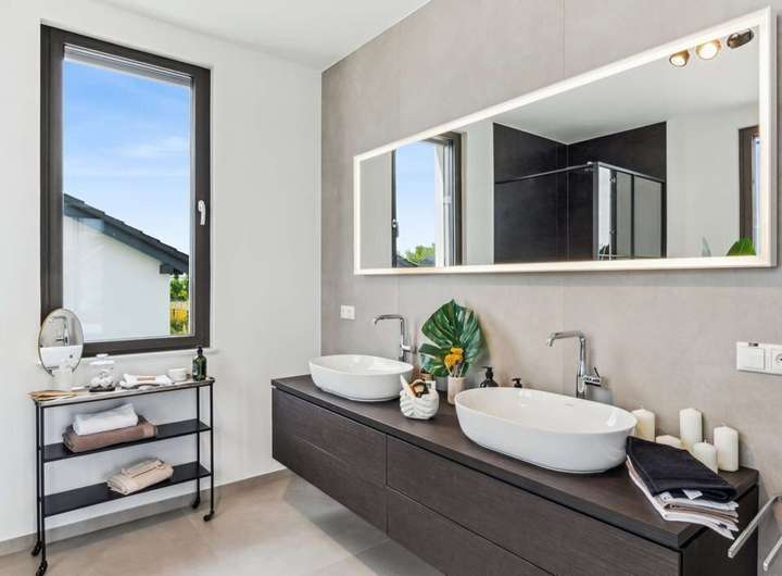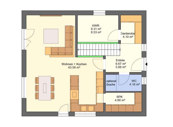 Ausstattung: - langlebige und wertbeständige Massivbauweise - wir bauen inkl. Bodenplatte, optional bieten wir gern die vorbereitenden Erdarbeiten an - Architektenleistung inkl. - geringer Mehrpreis für Effizienzhausstandard 40, mit der Möglichkeit für KfW-Fördermittel - klimafreundliche Luftwasser-Wärmepumpe - Fußbodenheizung - Dusche im Erdgeschossbad ist optional möglich - einzugsfertig (außer Malern/Bodenbeläge) - 3-fach verglaste Fenster inkl. elektrischen Aluminiumrolladen - Wohnraumhöhe von 2,60/ 2,50 m enthalten – Wand- und Bodenfliesen im Bad und Gäste-WC – hochwertige Sanitärausstattung – umfangreiche Elektroausstattung - und vieles mehr...