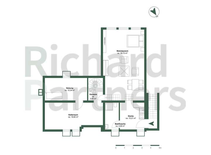 • Separater Kaminzug für einen Ofenanschluss im Essbereich (z.Z. stillgelegt)