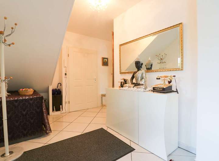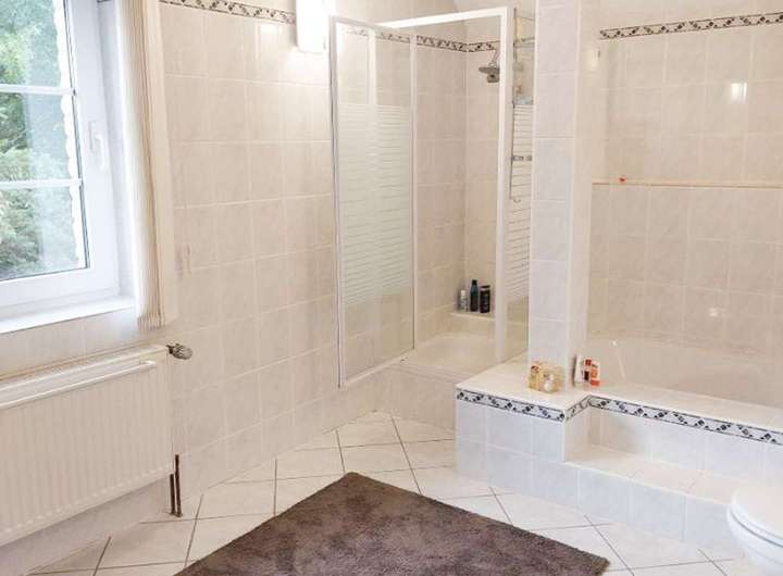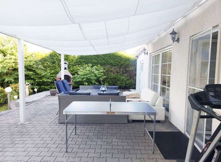 Dieses großzügige Zweifamilienhaus bietet insgesamt ca. 230 m² Wohnfläche (inkl. hälftig angerechneter 80 m² großer Terrasse) und eignet sich ideal als Ein- oder Zweifamilienhaus. Sechs Zimmer, vier Schlafzimmer, zwei moderne Bäder und zwei Küchen eröffnen vielfältige Nutzungsmöglichkeiten – von komfortablem Familienwohnen bis hin zu Homeoffice oder Vermietung. Besonderes Extra: Der ausgebaute Spitzboden (ca. 33 m²) mit eigenem Zugang über eine Außentreppe – perfekt als Gäste-, Arbeits- oder Hobbybereich. Dieser Bereich ist nicht in der Wohnfläche inkludiert. Die Fenster sind größtenteils mit elektrischen Rollläden ausgestattet. Das Herzstück des Hauses ist der großzügige Wohn- und Essbereich, der eine einladende Atmosphäre schafft. Ergänzt wird das Raumangebot durch ein Gäste-WC sowie mehrere praktische Abstellräume. Im Außenbereich warten besondere Highlights: zwei großzügige Terrassen zur Ost- und Westseite mit ca. 80 m². Hier genießen Sie Sonne von morgens bis abends – ideal für entspannte Stunden im Freien. Der gepflegte Garten rundet das Wohnambiente ab. Für Ihre Fahrzeuge stehen eine Garage und ein Stellplatz zur Verfügung. Das Haus wurde 1996 errichtet und seither regelmäßig instandgehalten – gepflegt, solide und sofort bezugsbereit. Fazit: Ein Haus, das großzügiges Wohnen mit vielfältigen Nutzungsmöglichkeiten vereint – ideal für Familien und Paare, die Wert auf Komfort und Lebensqualität legen.