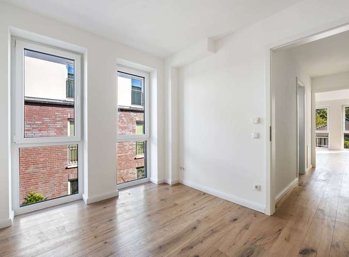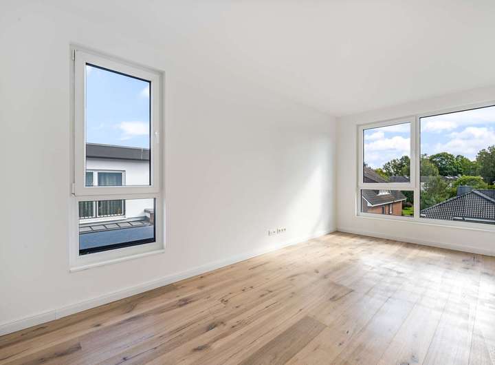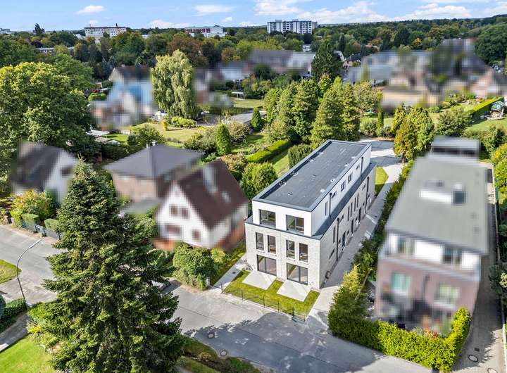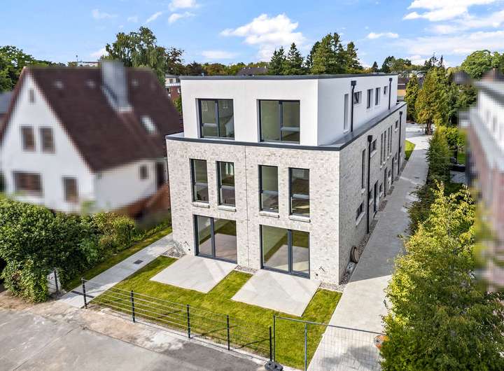 Das Neubauprojekt in Hamburg-Meiendorf überzeugt durch eine zeitgemäße und qualitativ hochwertige Bauweise, die sich konsequent an den aktuellen Anforderungen des Gebäudeenergiegesetzes (GEG) orientiert. Der Baukörper wurde in massiver Bauweise mit vollflächig gedämmtem Kalksandstein-Innenmauerwerk sowie einer repräsentativen Klinkerfassade im edlen hellgrauen Farbton (Röben Lyon NF) errichtet. Die Verwendung hochwertiger Materialien erstreckt sich über alle Gewerke – von den filigranen Stahlbetondecken über die bodentiefen Fenster mit 3-fach Wärmeschutzverglasung bis hin zur hocheffizienten BRÖTJE-Wärmepumpe mit Fußbodenheizung in sämtlichen Geschossen. Auch im Innenausbau wurde besonderer Wert auf Qualität gelegt: Großformatige Fliesen der Marke Caesar, gespachtelte Q3-Putzoberflächen und individuell regulierbare Raumtemperaturen sorgen für ein gehobenes Wohngefühl. Die Außenanlagen sind durchweg in Pflasterbauweise gestaltet und fügen sich harmonisch in das Gesamtkonzept ein. Die durchdachte Planung, solide Ausführung und die Verwendung langlebiger, energieeffizienter Bauteile unterstreichen die Wertbeständigkeit dieser Immobilie.
