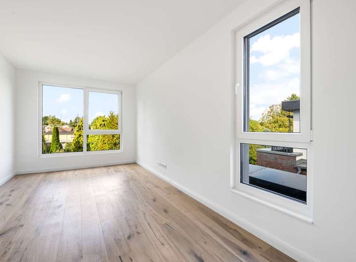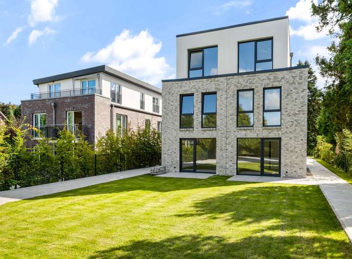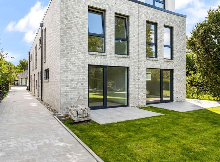 Das Neubauprojekt in Hamburg-Meiendorf überzeugt durch eine zeitgemäße und qualitativ hochwertige Bauweise, die sich konsequent an den aktuellen Anforderungen des Gebäudeenergiegesetzes (GEG) orientiert. Der Baukörper wurde in massiver Bauweise mit vollflächig gedämmtem Kalksandstein-Innenmauerwerk sowie einer repräsentativen Klinkerfassade im edlen hellgrauen Farbton (Röben Lyon NF) errichtet. Die Verwendung hochwertiger Materialien erstreckt sich über alle Gewerke – von den filigranen Stahlbetondecken über die bodentiefen Fenster mit 3-fach Wärmeschutzverglasung bis hin zur hocheffizienten BRÖTJE-Wärmepumpe mit Fußbodenheizung in sämtlichen Geschossen. Auch im Innenausbau wurde besonderer Wert auf Qualität gelegt: Großformatige Fliesen der Marke Caesar, gespachtelte Q3-Putzoberflächen und individuell regulierbare Raumtemperaturen sorgen für ein gehobenes Wohngefühl. Die Außenanlagen sind durchweg in Pflasterbauweise gestaltet und fügen sich harmonisch in das Gesamtkonzept ein. Die durchdachte Planung, solide Ausführung und die Verwendung langlebiger, energieeffizienter Bauteile unterstreichen die Wertbeständigkeit dieser Immobilie.