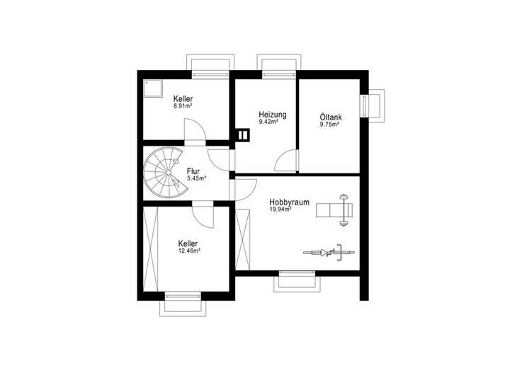 Das Haus ist vollständig unterkellert. Zusätzlich zu den üblichen Heizungs- und Abstellräumen bietet das Kellergeschoss einen großen Hobbyraum, der sich wunderbar in eine persönliche Wellnessoase oder einen Fitnessraum umwandeln lässt.