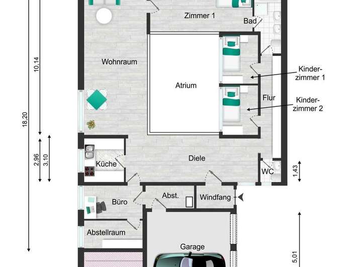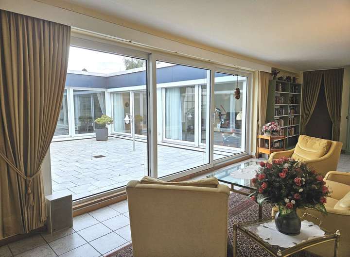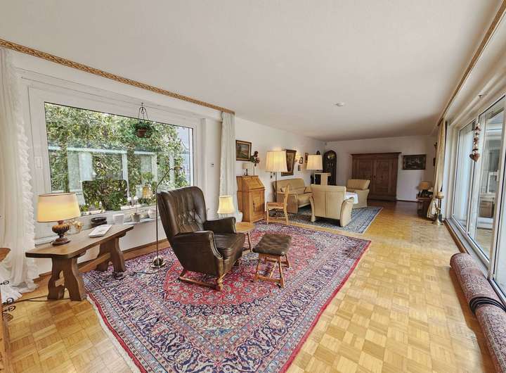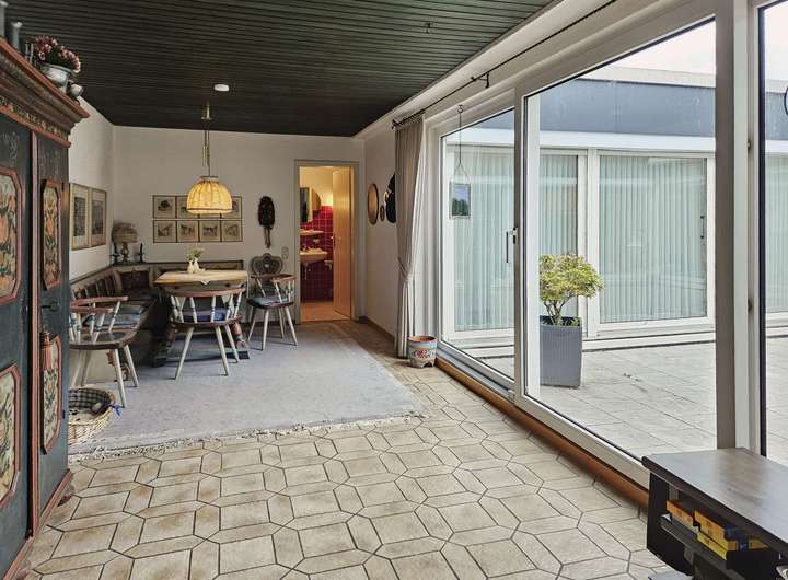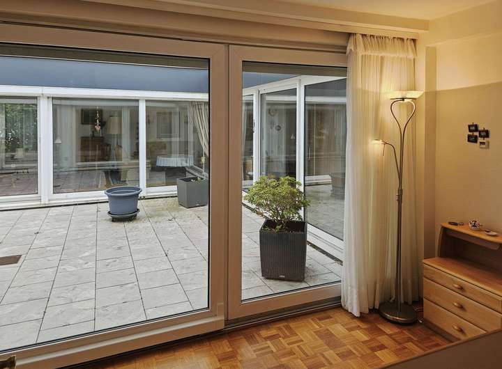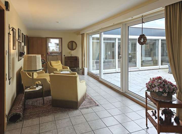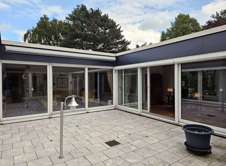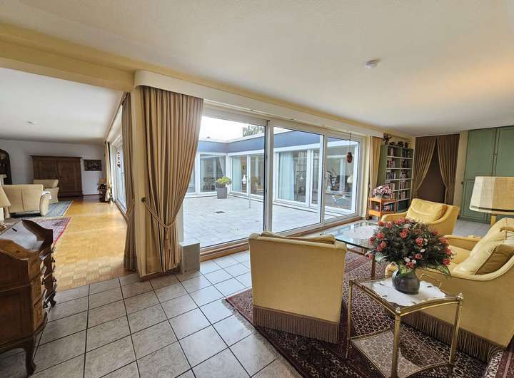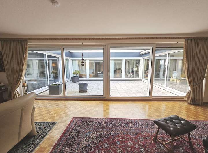 Das Herzstück des Hauses bildet das tolle Atrium, welches als innenliegende Terrasse (2018 erneuert) die Wohnräume mit Licht durchflutet und so eine Atmosphäre von Offenheit und Eleganz schafft. Fast jeder Raum verfügt über einen Zugang zu diesem exklusiven Highlight – ein Detail, das die besondere Architektur unterstreicht.