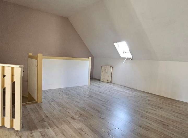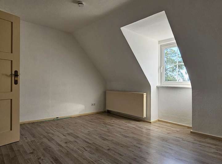Die Wohnung verfügt über ein helles Badezimmer mit Badewanne, eine große Küche, sowie helle und geräumige Wohn- und Schlafzimmer. Der Dachboden ist teilweise zu einer 2. Etage ausgebaut. Ein großer Garten bietet einen tollen Rückzugsort.