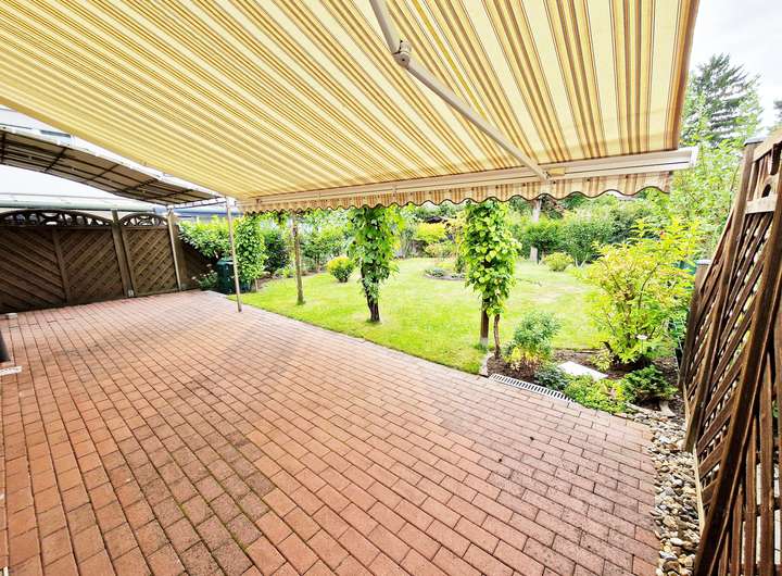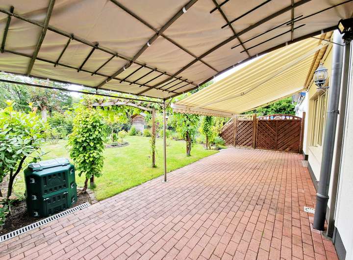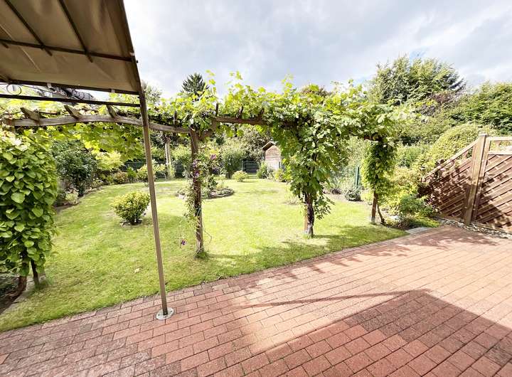 Das Erdgeschoss teilt sich in Küche, Flur, Gäste-WC, eine Abstellkammer sowie den großen Wohn- und Esszimmerbereich auf. Von dort haben Sie direkten Zugang zur tollen Terrasse und dem schönen Garten des ca. 285 m² großen Grundstücks.