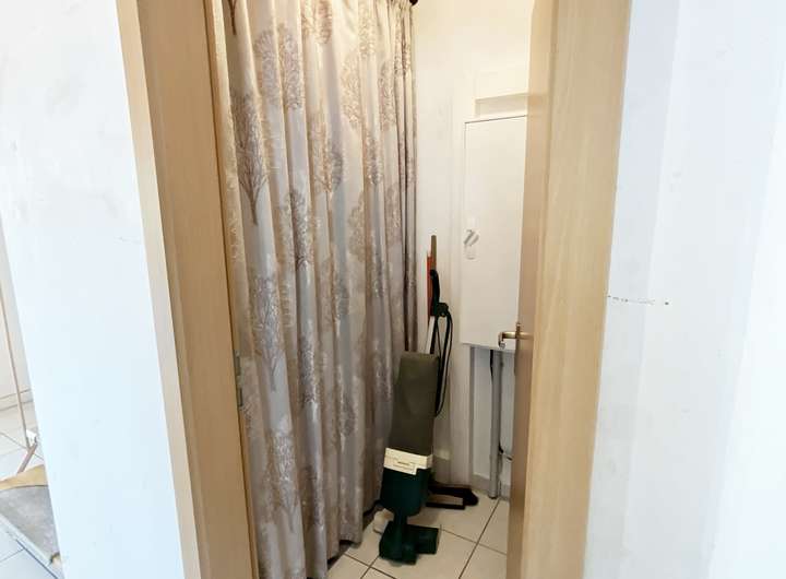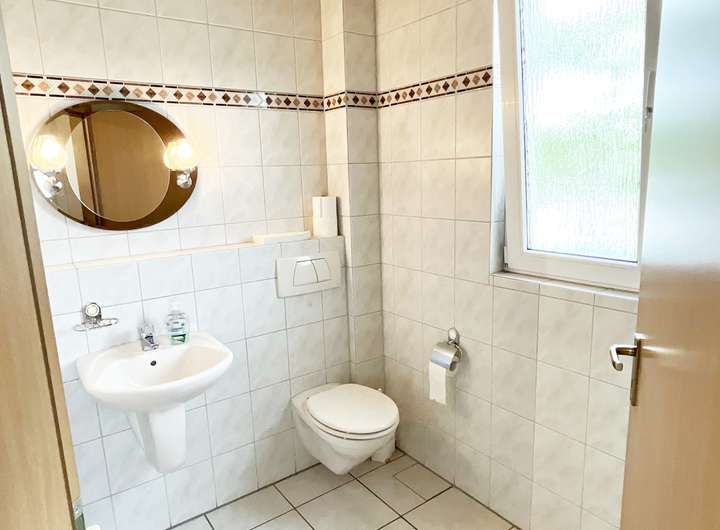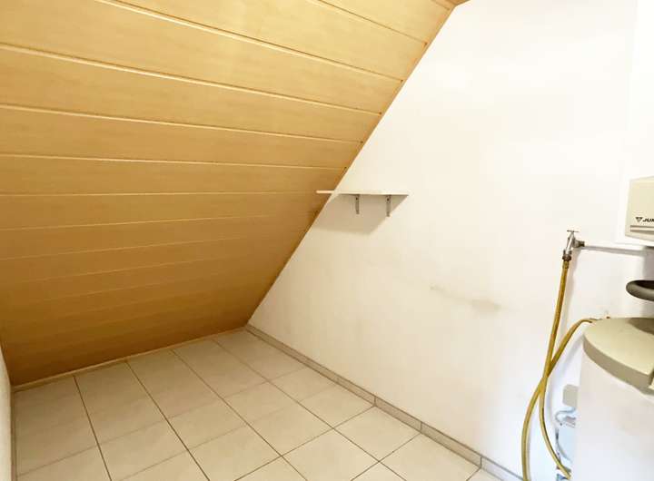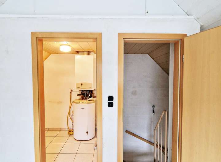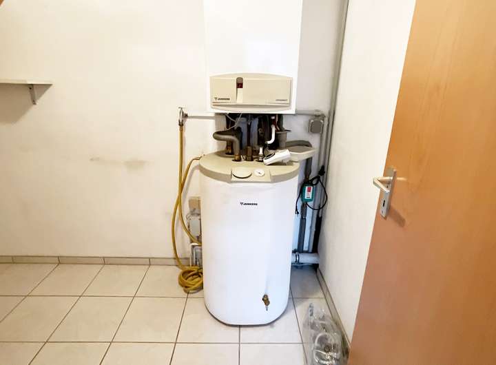 Ebenso befindet sich dort ein abgetrennter Abstellraum, in dem die Heizungsanlage untergebracht ist.