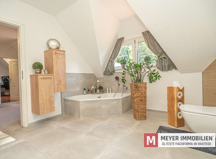 Das Badezimmer im Dachgeschoss wurde erst 2022 erneuert.