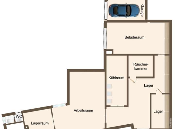 - Gewerbefläche mit ca. 208,4 m² (derzeit als Fleischerei genutzt)