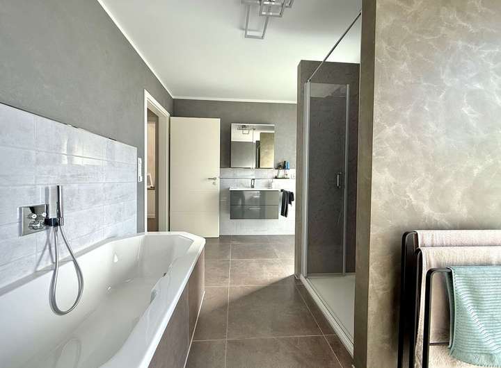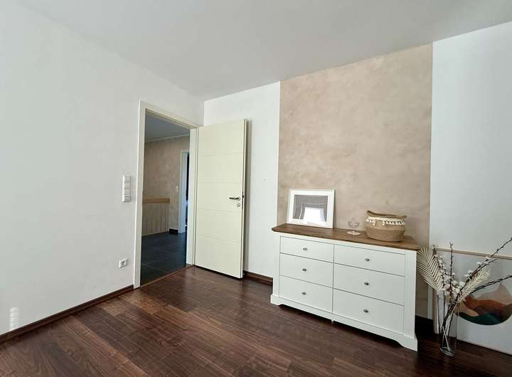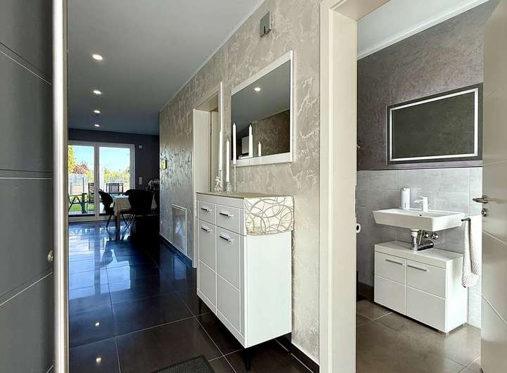 Energieeffizient, hochmodern mit zeitlosem Design – ein neuwertiges Architekten-Stadthaus, das begeistert und das es - im wahrsten Sinne des Wortes - in sich hat: viel Platz, eine umfangreiche sowie exklusive Ausstattung und vieles mehr. Bereits beim Betreten des Hauses empfängt Bewohner und Besucher ein großzügiges Raumgefühl sowie hochwertige Materialien. Großformatige Bodenfliesen, das zentrale Treppenhaus und Design-Putz sind hierbei nur die ersten Eye-Catcher. Die Glasfront mit bodentiefen Fenstern zur östlich ausgerichteten Terrasse, lädt ein in den lichtdurchfluteten und klimatisierten Wohn- und Essbereich mit offener Küche. Im Erdgeschoss befinden sich zudem ein Gäste-Bad, ein Büro und der Hauswirtschaftsraum. Auch das Obergeschoss ist großzügig und durchdacht. Hier wurden eine Galerie, das geräumige Bad mit Wanne und Dusche sowie ein klimatisiertes Schlafzimmer und 2 weitere Zimmer arrangiert. Ihr Traumhaus wartet auf Sie, einziehen und wohlfühlen. Sprechen Sie uns gerne an für weitere Informationen oder einen Besichtigungstermin.