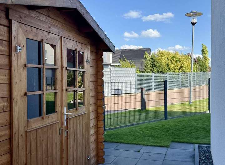 - hocheffizienter Neubau (KfW 55 Standard), Energieeffizienz A+ (Nebenkosten Heizung, Strom nur € 100 / Mt.) - Glasvorbau/ Windfang (2024) - Smart-Home für Heizung, Garten, Licht und Sicherheitstechnik - Glasfaser & LAN-Anschlüsse in allen Zimmern - hochwertige Einbauküche mit Markengeräten - 3-fach isolierverglaste & bodentiefe Fenster mit elektr. Rollläden - Luft-Wärmepumpe und Klimatisierung - zentrale Lüftungsanlage mit Wärmerückgewinnung - angelegter Garten mit Bewässerung und Rasenroboter (App-Steuerung) - Gartenhaus und 3 PKW-Stellplätze