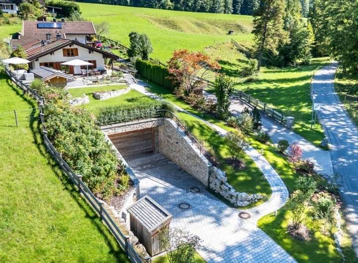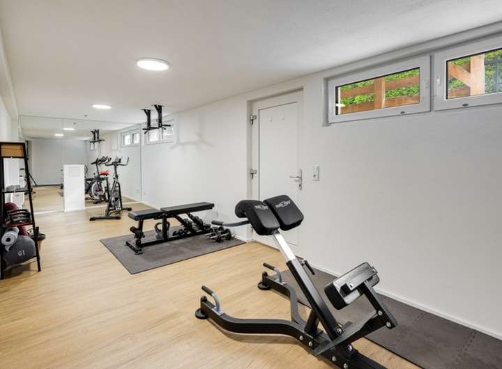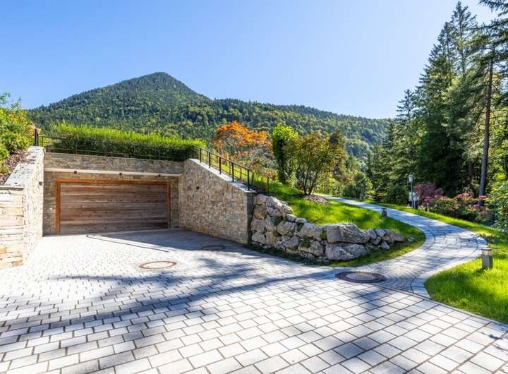 Darüber hinaus verfügt der Keller über ein separates Fitnessstudio mit kleinem Hobbyraum. Für höchsten Komfort sorgt eine repräsentative Zufahrt und eine große Doppelgarage mit Zugang zum Hauseingang. Die Materialien und Ausstattung des Hauses wurden mit höchster Sorgfalt gewählt: Edles Holz, Naturstein und fein gearbeitete Details fügen sich harmonisch ein, während moderne Annehmlichkeiten zeitgemäßen Komfort garantieren – eine perfekte Verbindung von klassischem Charme und hochwertiger Ausstattung im Tegernseer Stil.