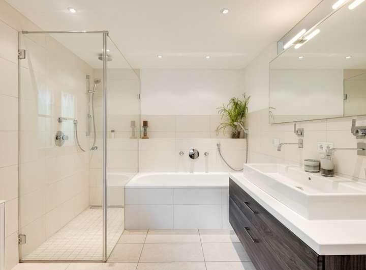 - Hochwertige und helle Bäder mit Fußbodenheizung