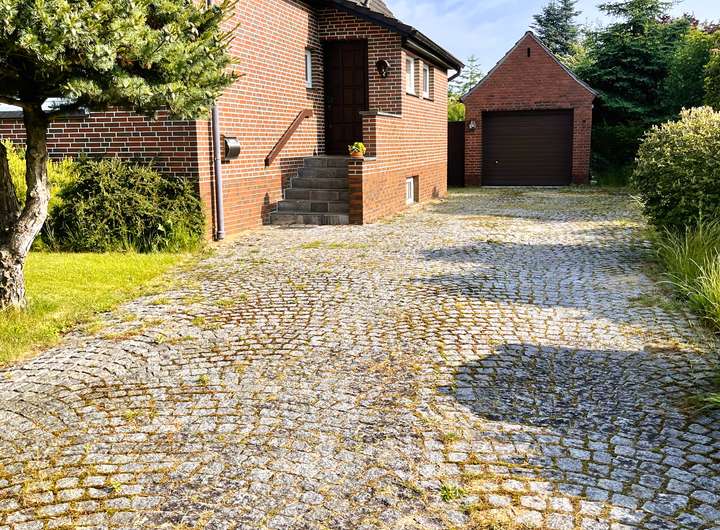 Praktisch ist natürlich auch der geräumige Vollkeller mit Außenzugang zum Garten – ideal als Spielkeller, Werkstatt, Lager oder Hobbybereich. Die separate Einzelgarage mit modernem Sektionaltor sorgt für sicheren und komfortablen Stellplatz. Davor befindet sich ein stilvoll mit Kopfsteinpflaster gestalteter Hof mit weiterer Pkw-Stellplatzfläche.