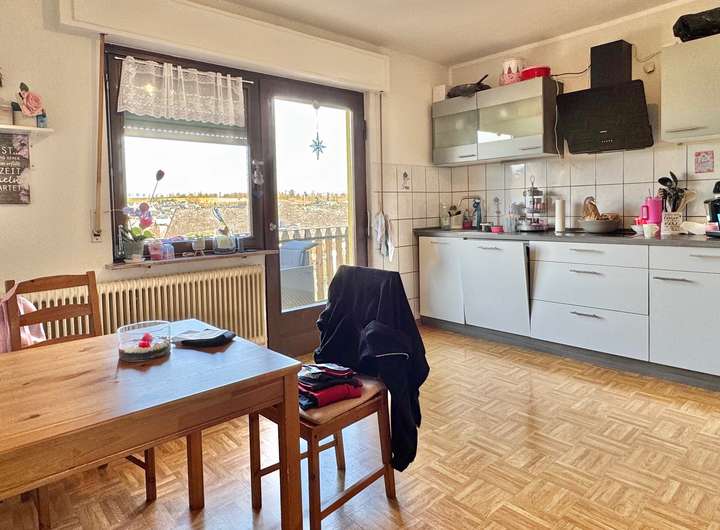 EG: Wohnung mit Flur, Spind, Wohnzimmer, Schlafzimmer, Bad mit Wanne, große Küche mit Anbau unter dem Balkon und Ausgang auf die Terrasse und in den Garten, zusätzlicher Raum (nicht in der Flächenberechnung erfasst). Die Wohnfläche beträgt ca. 71,50 m².