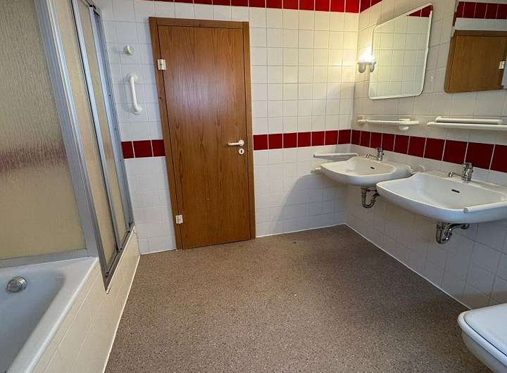- Badewanne, Dusche, 2 Waschbecken u. Bidet im OG.