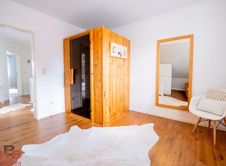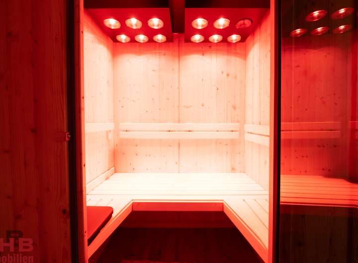 Im Obergeschoss befindet sich auch die Infrarotsauna, die zum Entspannen einlädt.