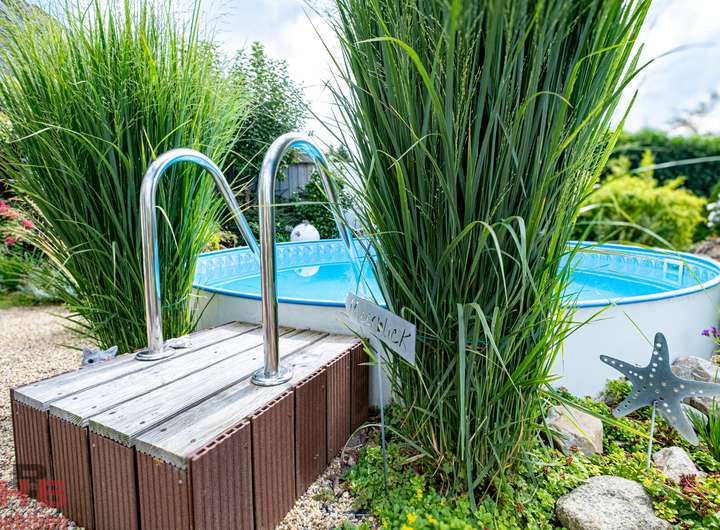 Der Außenbereich lässt keine Wünsche offen: Ein beheizter Pool sorgt für sommerliches Badevergnügen. Hier vereinen sich Komfort, Erholung und Lebensqualität in einzigartiger Weise.