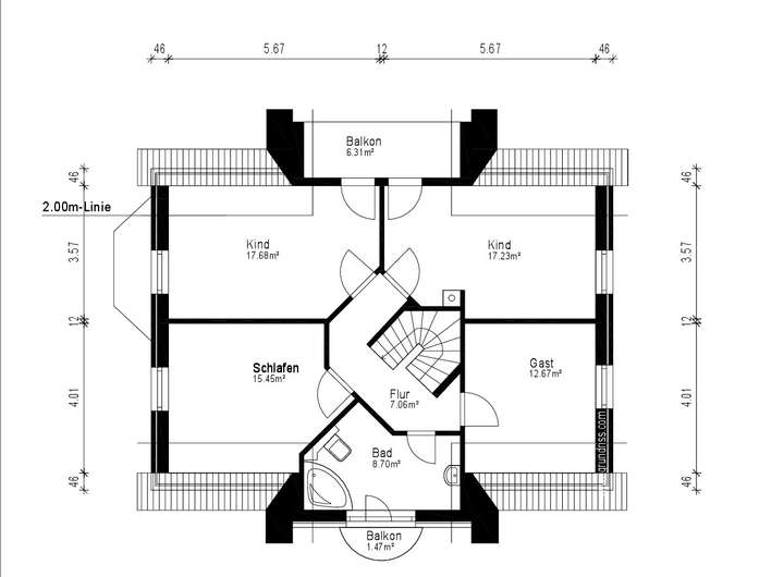 -Schlafzimmer, Gästezimmer, zwei Kinderzimmer mit Balkonzugang