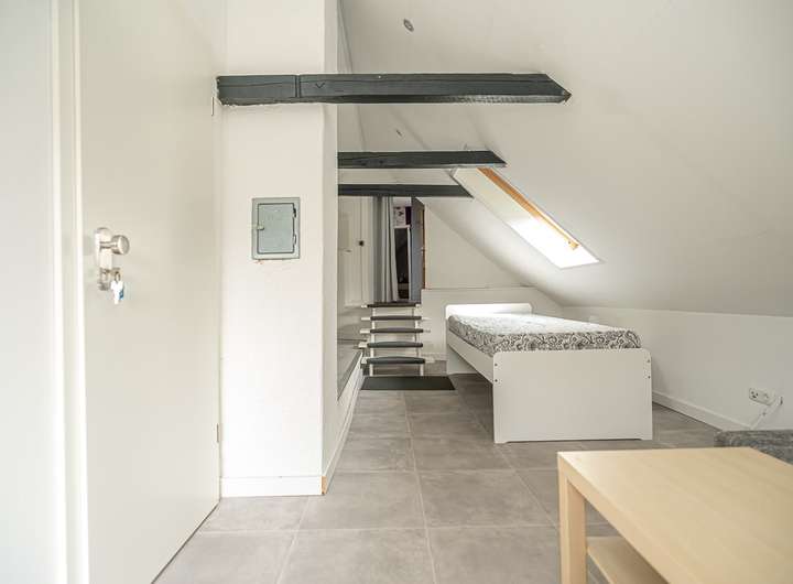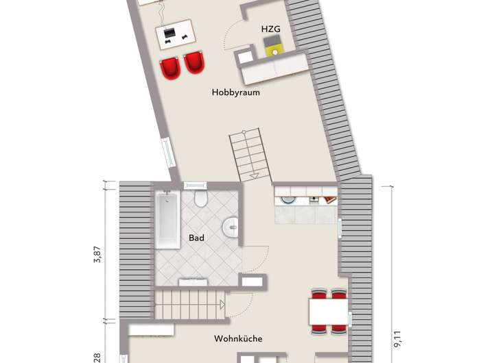 Dachgeschoss, Whg. 2 (ca. 41,66 m² Wfl.) - Wohnküche, Schlafzimmer, Hobby-/Bodenraum, Heizungsraum; Balkon