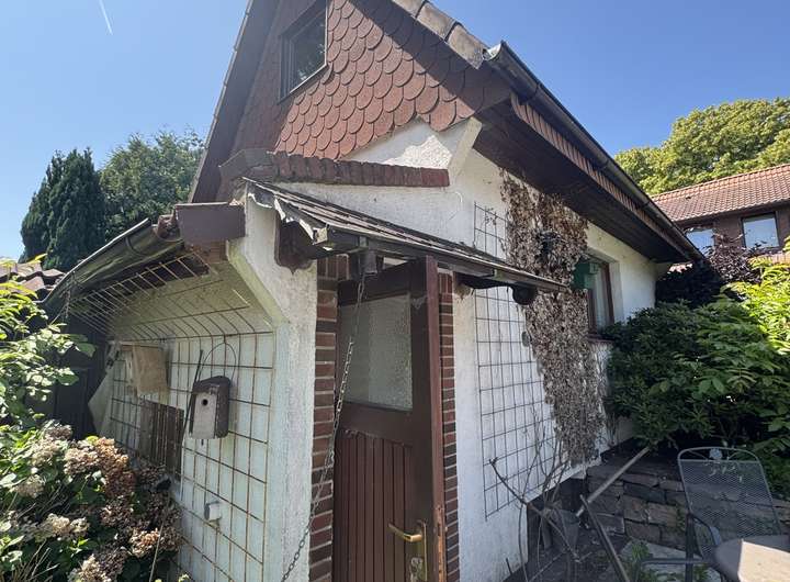 Das Anwesen bietet zahlreiche Nebengebäude, darunter eine Garage mit Anbau, ein Gästehaus für gemütliche Stunden. Dieses kleine Gebäude mit Spitzdach verfügt über ein eigenes Bad, Strom-, Telefonanschluss und eine Werkstatt im Keller – ideal für Gäste, ein Homeoffice oder kreative Projekte.
