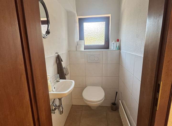 Mit einer Wohnfläche von ca. 100 m² ist das Haus gut geschnitten und bietet durchdachte Räume, die sich individuell gestalten lassen. Das Erdgeschoss umfasst einen einladenden Eingangsbereich, ein großzügiges Wohnzimmer, eine separate Küche mit angrenzendem Esszimmer sowie ein Gäste-WC. Ein weiteres Zimmer, derzeit als Büro genutzt, lässt sich flexibel als Badezimmer oder zusätzliche Küche umwandeln.