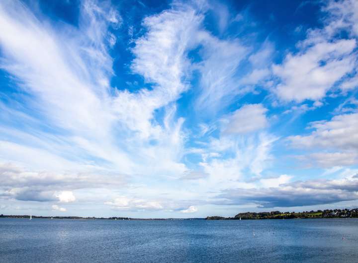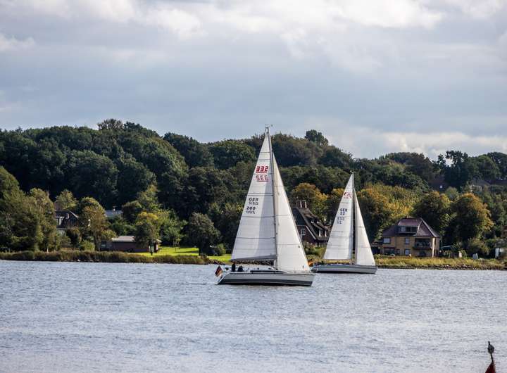 zu 38 m² große Dachterrassen. Hier kann man den Blick schweifen lassen und den traumhaften, unverbauten Ausblick auf die Schlei-Landschaft genießen.