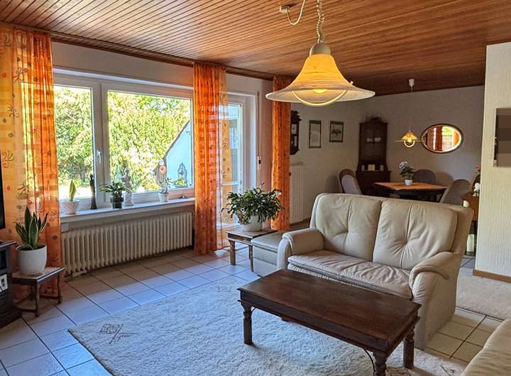 Das angebotene Einfamilienhaus wurde im Jahr 1973 in Massivbauweise auf dem 456 m² großen Grundstück errichtet. Auf etwa 119 m² Wohnfläche teilen sich vier Zimmer und zwei Tageslichtbäder im Erd- und Dachgeschoss des Hauses praktisch auf. Aufgrund der Raumaufteilung eignet sich das Einfamilienhaus ideal für Paare und Familien. Neben der gut durchdachten Raumaufteilung sowie dem uneinsehbaren Garten möchten wir auf Sie auf folgende Ausstattungsdetails besonders hinweisen: - Großzügiger Wohn-/ Essbereich mit Zugang auf die Terrasse - Terrasse mit Markise - Geräteraum neben der Terrasse - Küche mit Einbaumöbeln - Tageslichtbad mit Dusche im Erdgeschoss - Wannenbad mit Tageslicht im Dachgeschoss - Kunststofffenster mit Isolierverglasung und Außenrollläden - Öl-Zentralheizung von 2011 - Uneinsehbarer Garten - Garage