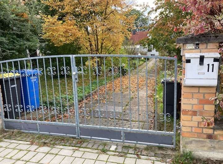 Die Teilung soll in der Hälfte erfolgen und eine Zufahrt mit Dienstbarkeit für beide Grundstücke geschaffen werden.