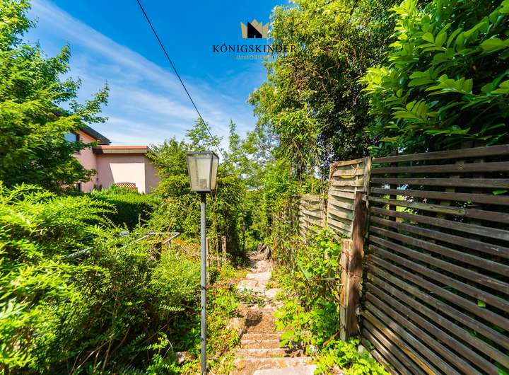 Der Zugang zum Grundstück erfolgt derzeit über einen bis zu 2,5m breiten Weg bzw. Treppe der von der Straße in ca. 30m zum Grundstück führt.