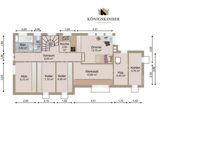Der Zugang zum Untergeschoss erfolgt über eine separate Treppenmöglichkeit, so dass auch die Möglichkeit besteht, eine separate Einliegerwohnung daraus zu machen.